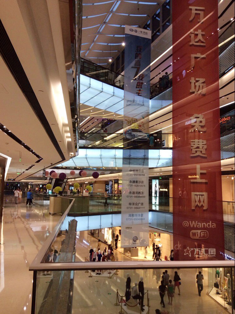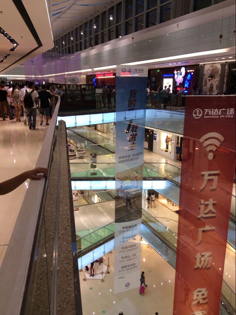 卖场,城市购物综合体,MALL的中庭广告吊旗,都是采用双面布或双面网格布广告画,因为这两种布平直,不卷边,喷画效果好。