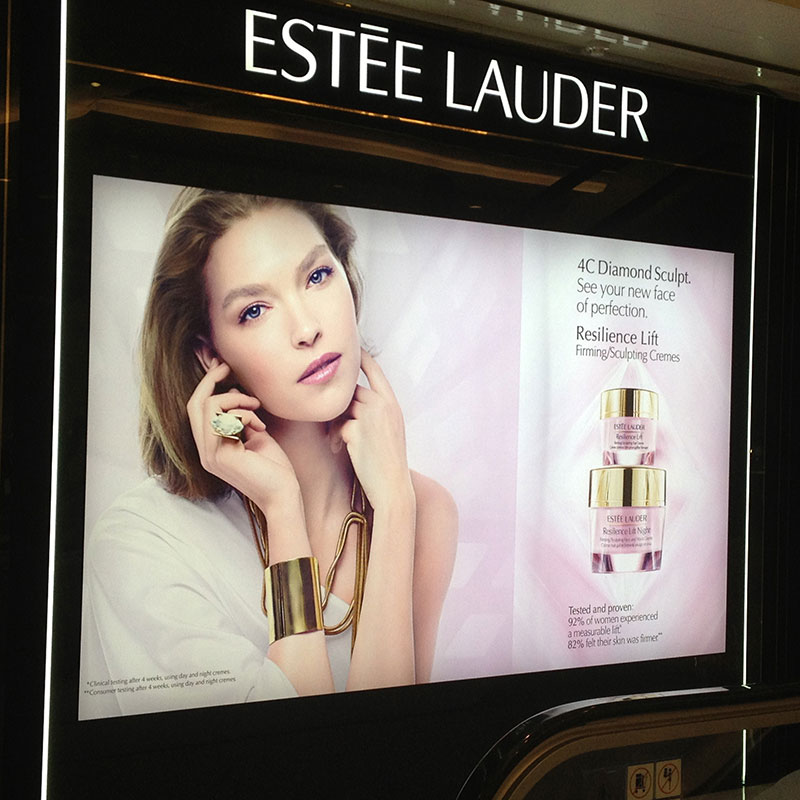 特性: 打印画面精致细腻,均匀透光性,高精度,背面镜像喷绘写真。
