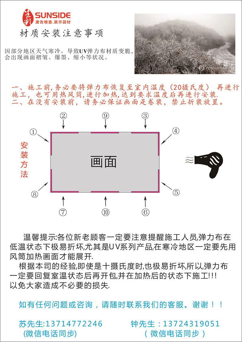 UV喷绘3P灯箱布冬天使用安装注意事项!!!!!