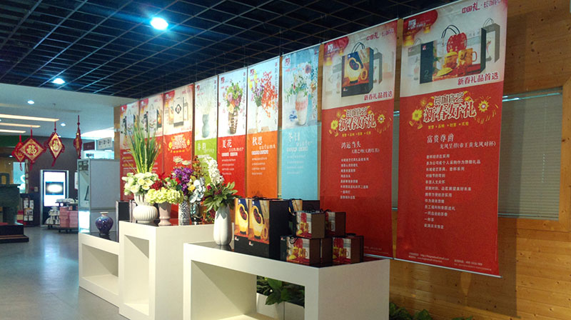 旗、刀旗、易拉宝、拉网展架、彩易展系统、快幕秀、促销台、L形展架、人像立牌、海报架等。