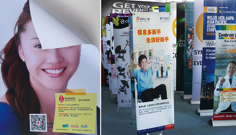 旗、刀旗、易拉宝、拉网展架、彩易展系统、快幕秀、促销台、L形展架、人像立牌、海报架等。